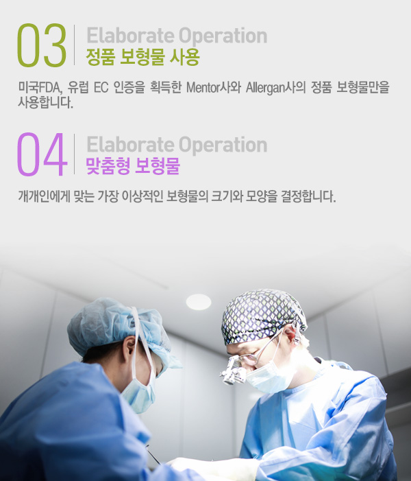 | 압구정 디알 의료진의 노하우 기술인 정확한 공간 박리수술을 통해 보형물이 보다 자연스럽고 이상적인 위치에 있도록 만들어주어 볼륨감 있으며 아름다운 가슴라인을 만듭니다. |