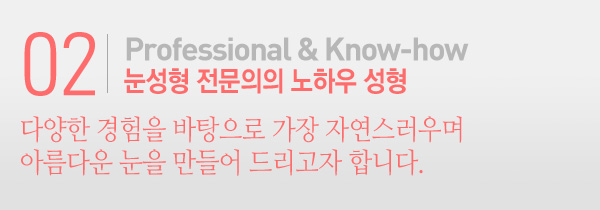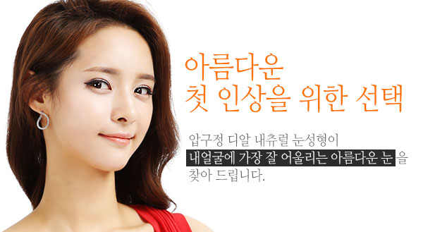 | 눈은 첫인상을 결정짓는 중요한 부분이기에 수술을 결정 하실 때 더욱 신중한 결정이 필요합니다. 압구정 디알 내츄럴 눈성형은 눈성형 전문의의 전문적인 지식과 다양한 경험을 바탕으로 가장 자연스러우며 아름다운 눈을 만들어 드리고자 합니다. |