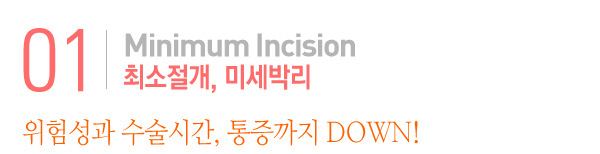 | 0.5cm 이하의 최소절개와 미세박리로 수술과정이 진행되므로 수술의 위험성과 수술시간을 단축하였으며 통증 또한 적습니다. |