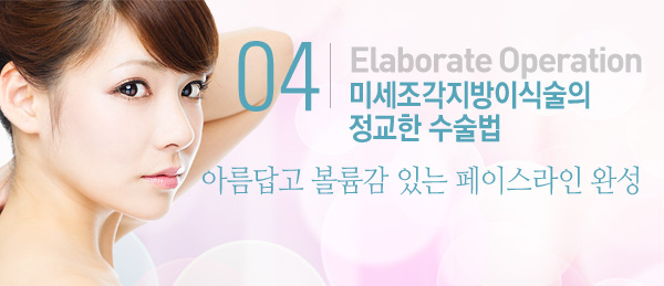 | 한 번에 지방세포를 이식할 경우 생착율과 자연스러운 입체라인을 얻기 힘들어 수술의 경과 또한 좋지 못합니다. 압구정 디알 3D지방성형은 여러 층에 아주 작은 단위의 지방을 고르게 이식하는 정교한 미세조각지방이식술을 통해 보다 아름답고 볼륨감 있는 페이스라인을 만들어 드립니다. |